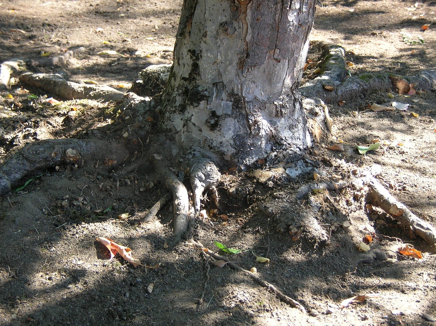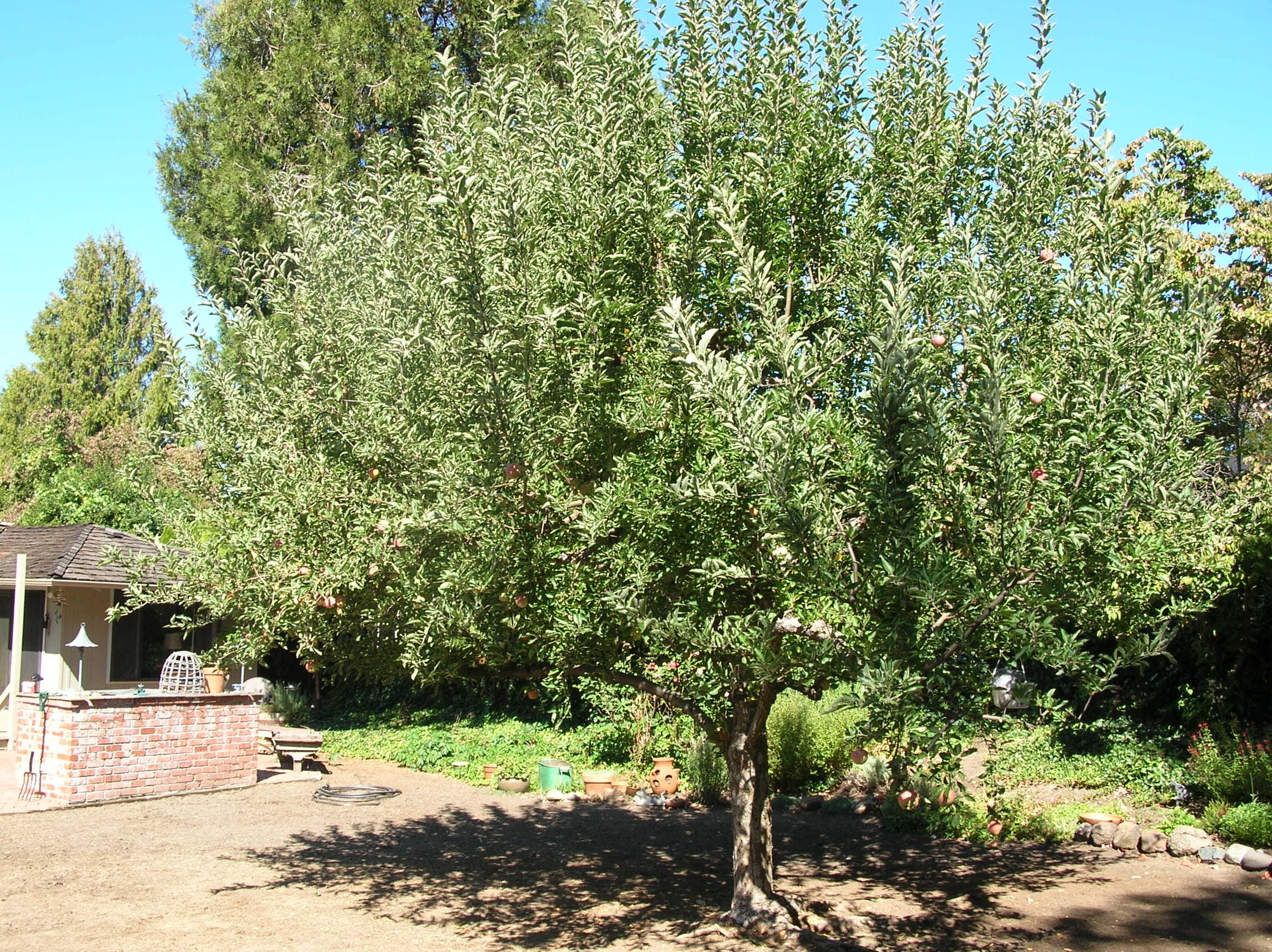 The apple tree pictured below is one of the most healthy and well-planted trees I have ever seen. A fine specimen to show you what a tree should like like when planted properly. The roots are clearly above the surface of the soil - fanning out beautifully - with fruit that is supported by proper respiration, that minimizes disease and pests, and comes from planting high like this!