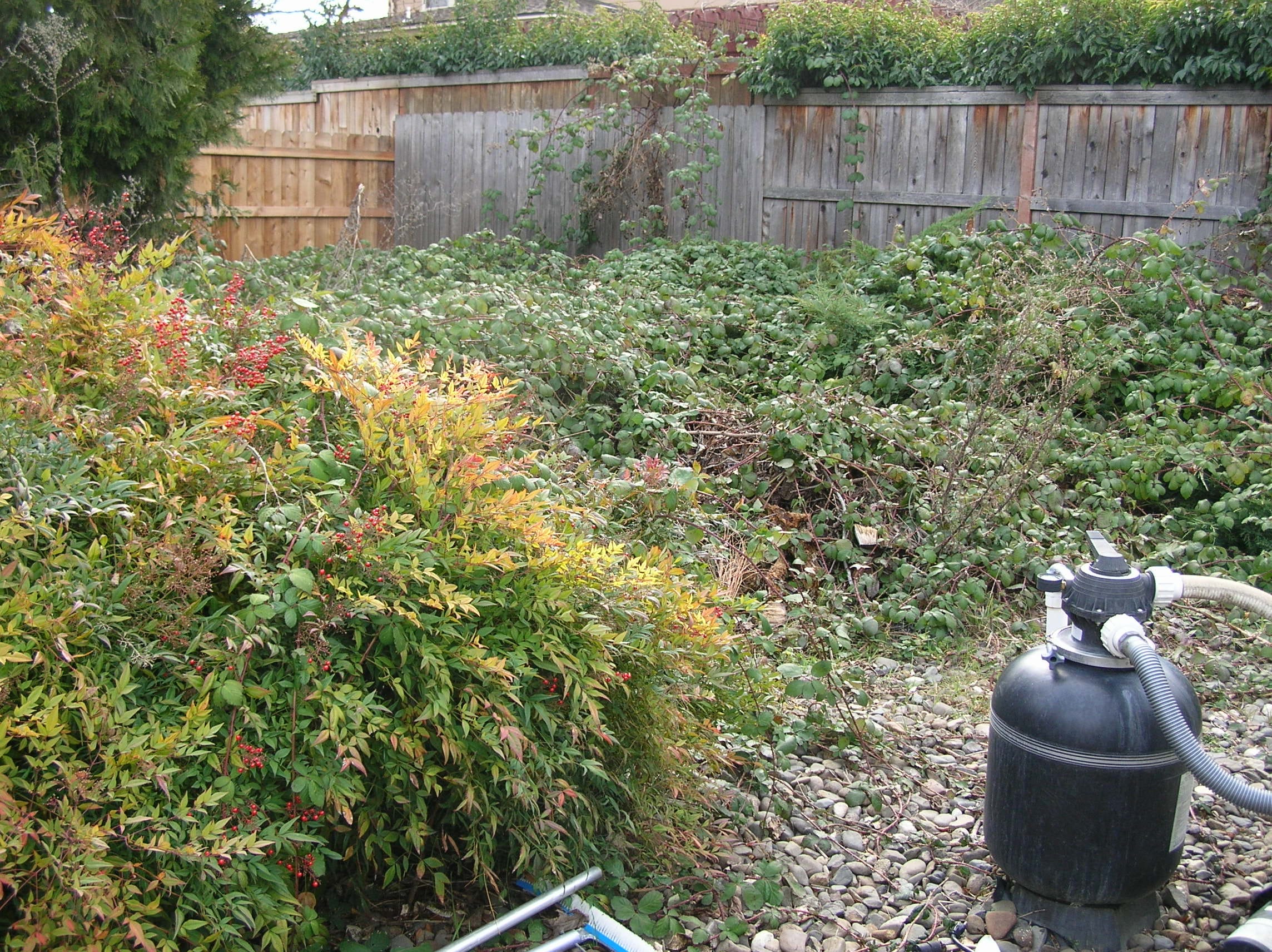 Here's what one man who's been working with me for over a year now, almost exclusively doing blackberry removal and maintenance, had to say upon completion of his initial cleanup project. Pictured below is an area I cleared, laid cardboard, and finished with mulch.