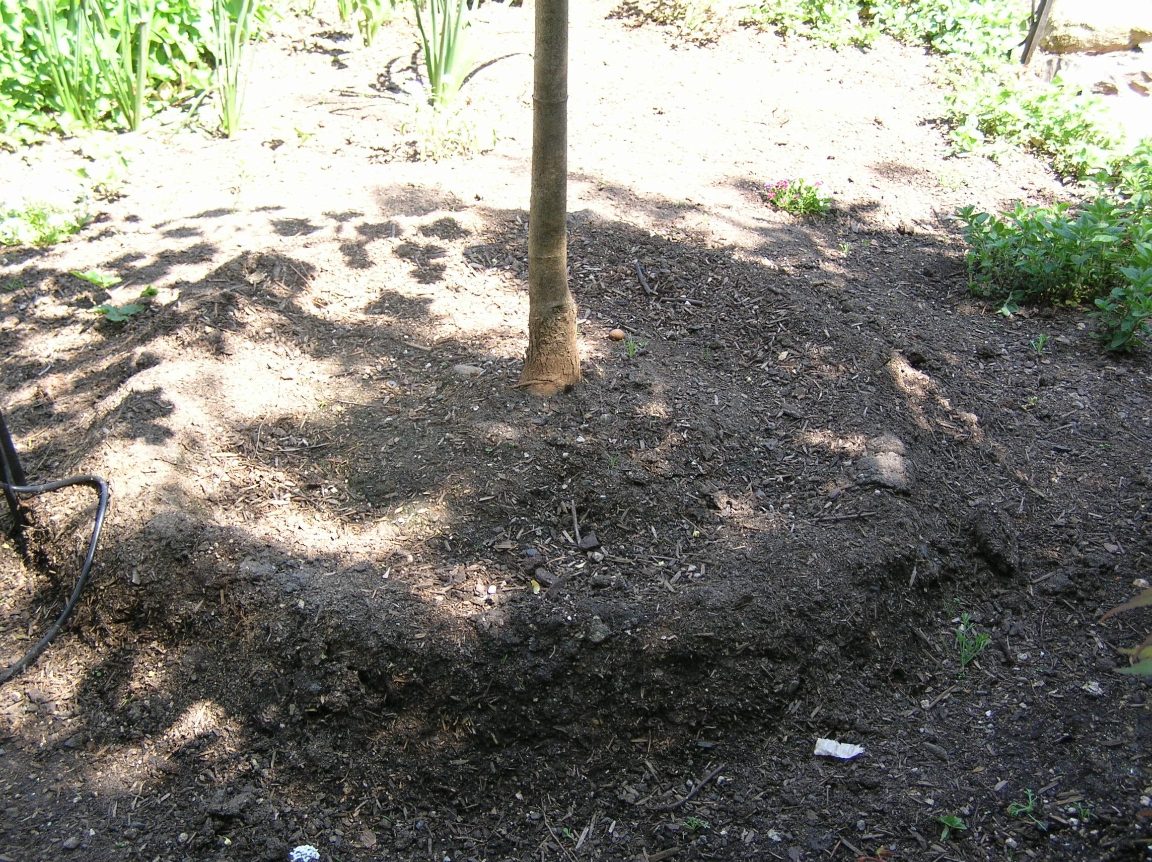 Heir on the side of planting mounded up or high vs planting your plants low into the ground. When you plant too low you can often bury the feeder roots and tree well zone that is a critical place to keep above the soil and exposed for the life of your plant. This is a breathing zone your plants need, and when it gets buried this can often be the reason why your plant is dying or starting to show signs of disease.