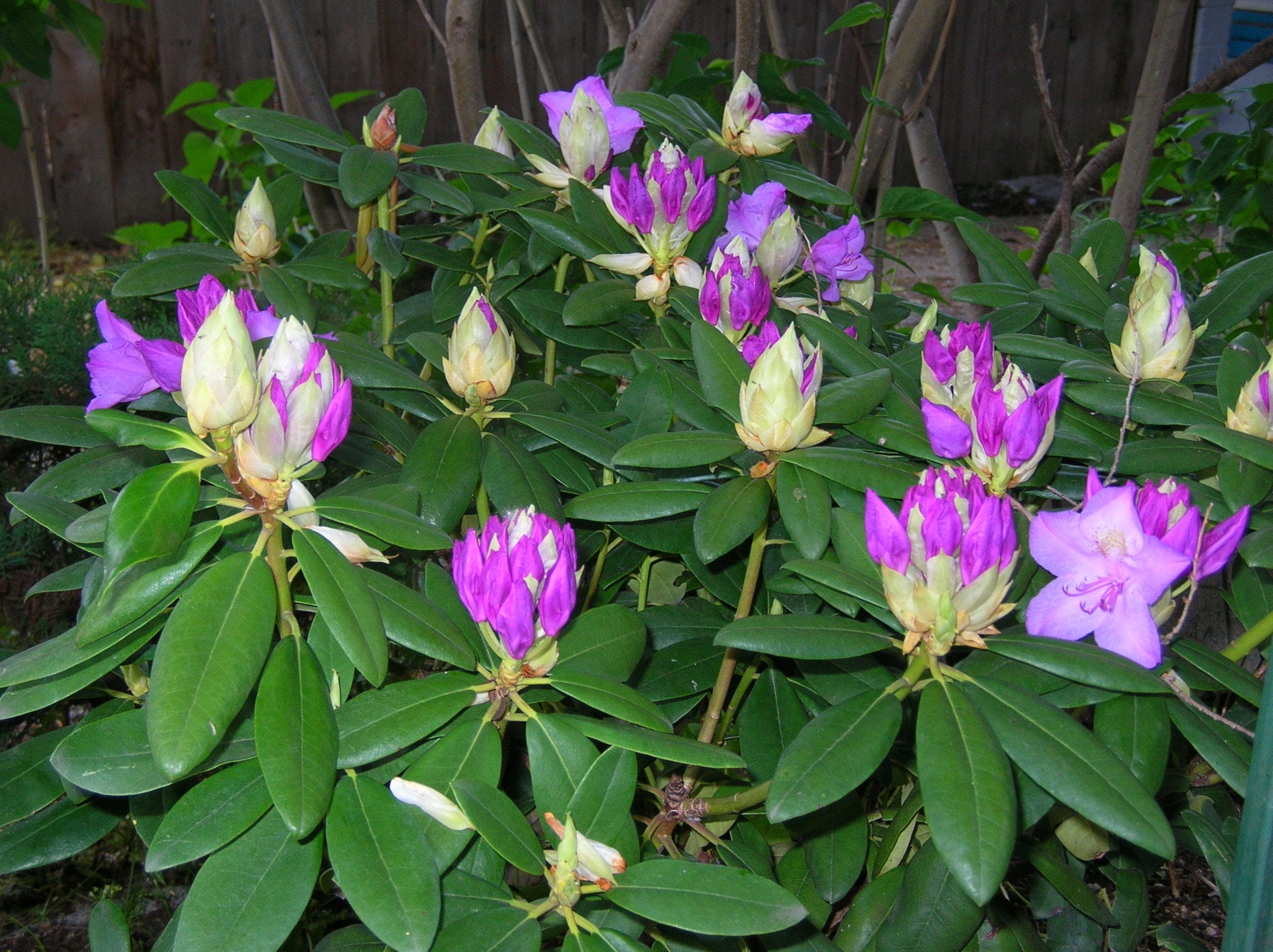 Rhododendrons - A great bordering shrub. Does very in Southern Oregon when well maintained in the proper acid soil. The blooms are beautiful and bursting with color!