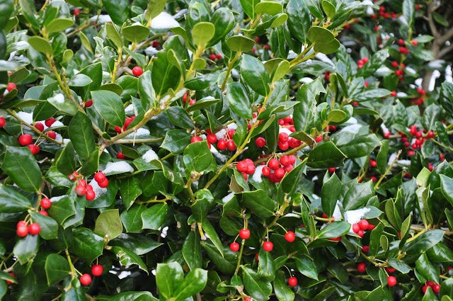 Holly - Another good bordering shrub/tree. Can be shaped to a hedge and the red berries make for good color when fruiting.