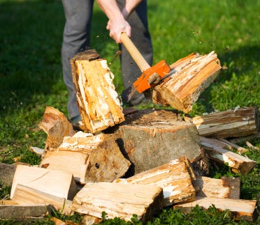 Wood Cutting and Stacking - Time to get out your chainsaw, maul, axe and wedge and get to work! Make sure you wear all the recommended gear to protect yourself. I recommend making 3 stacks of finished cuts.